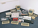 Apple Lisa (Atari), National CF-1200 (red), Oric Atmos, Sony HitBit HB-75P with Floppy CeTec DPF 5500, Sony HitBit HB-11 (red), Commodore VC-20, Apple Printer